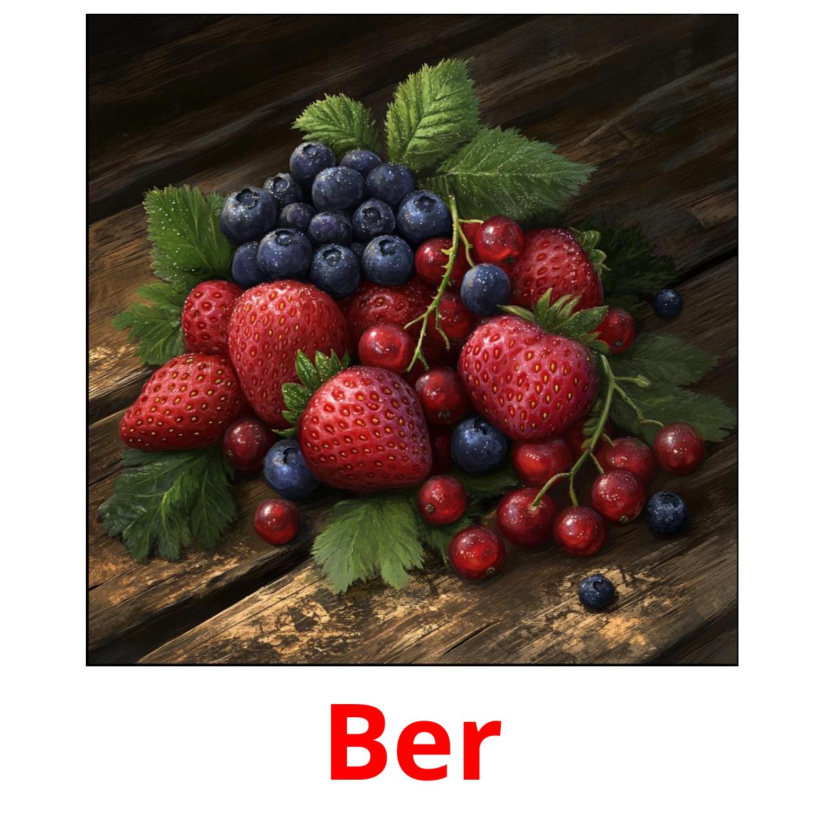 Billedkortsæt "Ber" til udskrivning indeholder islandsk ord som f.eks: