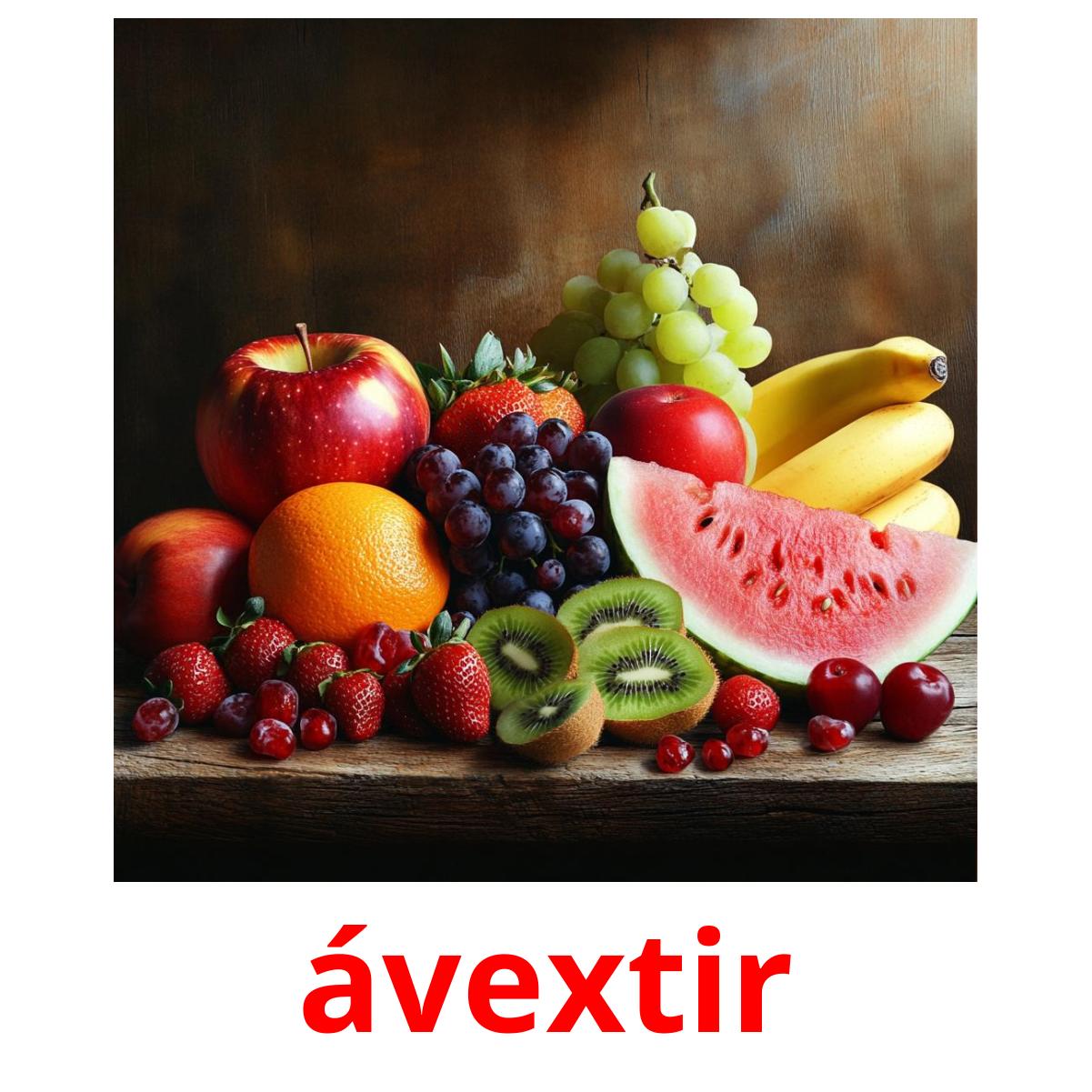 Billedkortsæt "Ávextir" til udskrivning indeholder islandsk ord som f.eks: