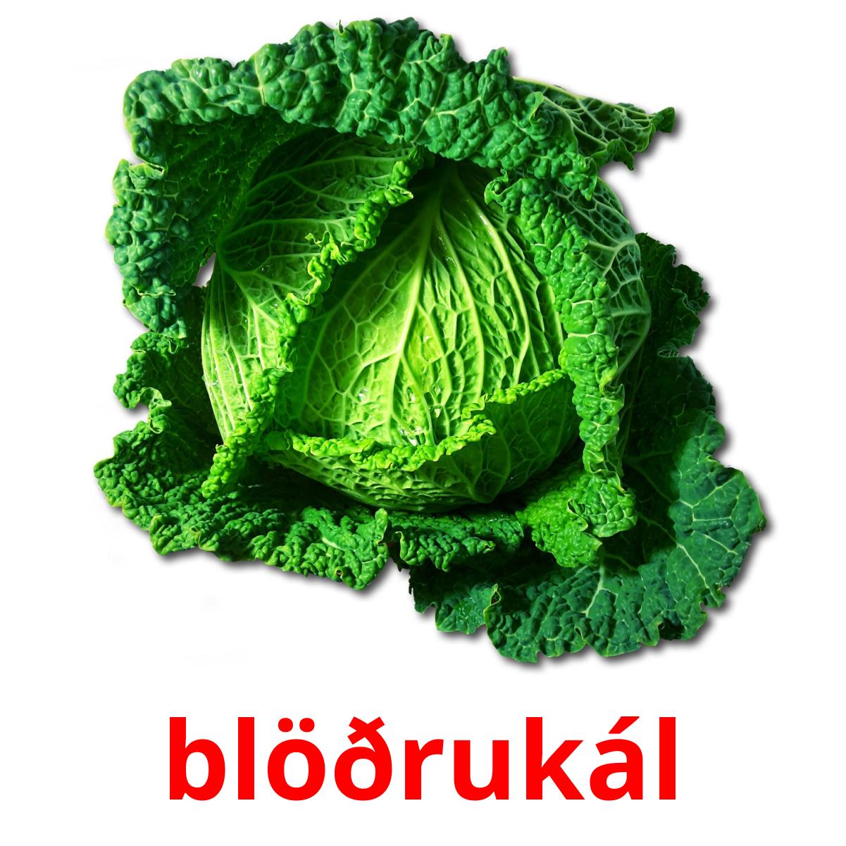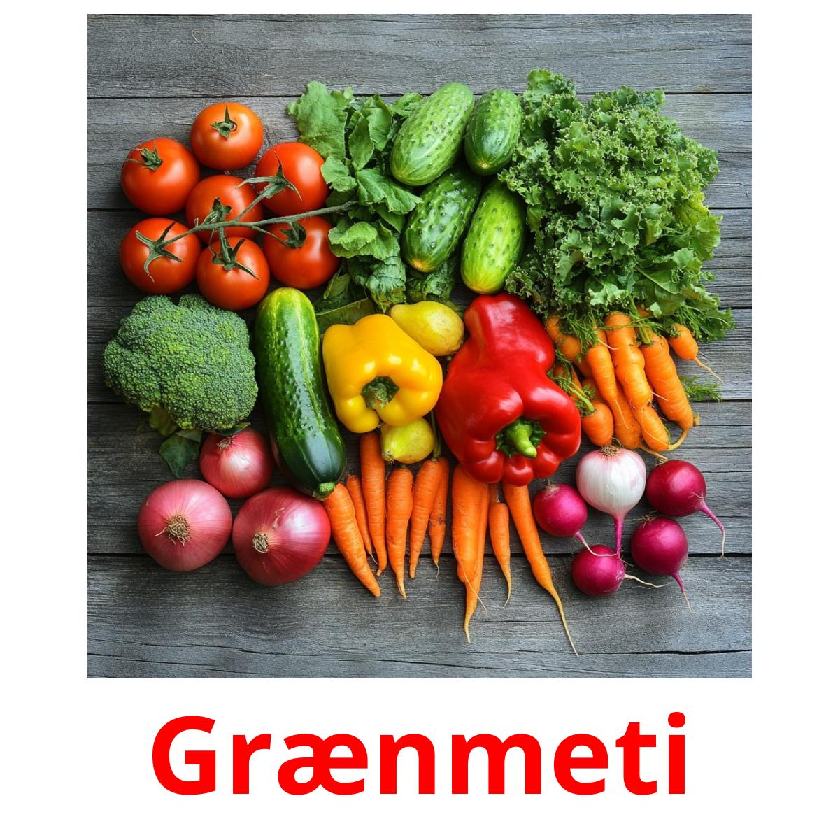 Billedkortsæt "Grænmeti" til udskrivning indeholder islandsk ord som f.eks: