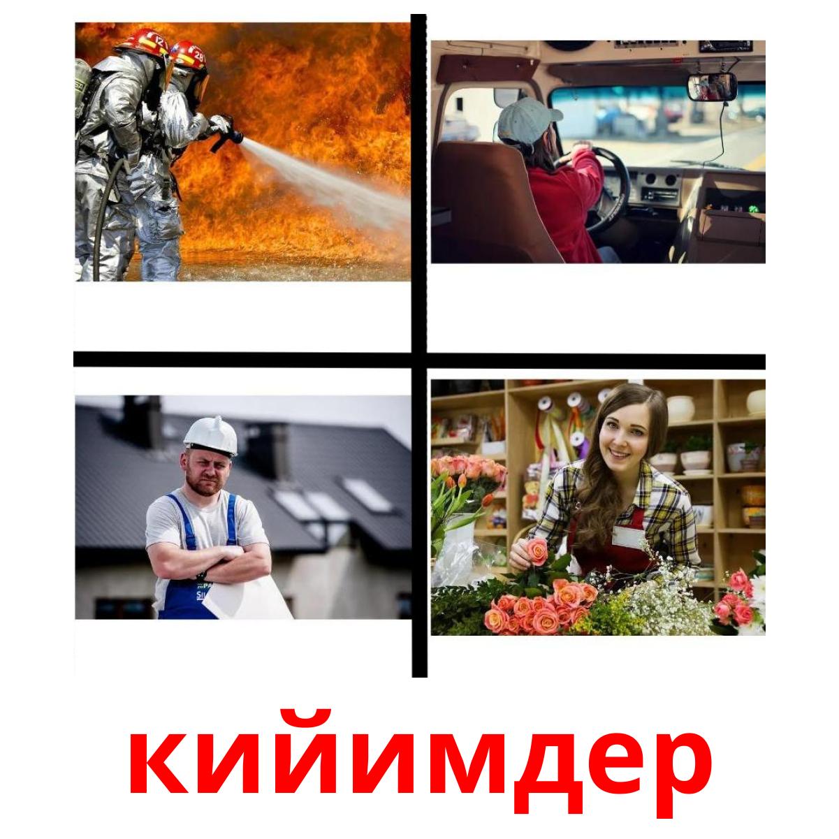 Billedkortsæt "Кесиптер жана кызматтар" til udskrivning indeholder kirgisisk ord som f.eks: