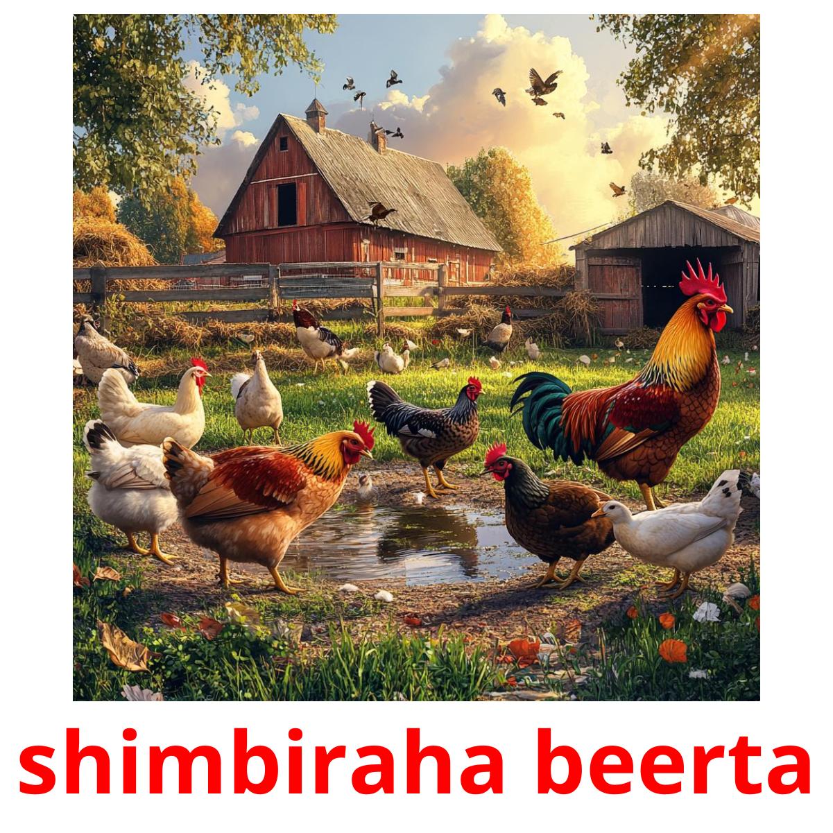 Printable picture cards set "Shimbiraha beerta" includes such somali words as: