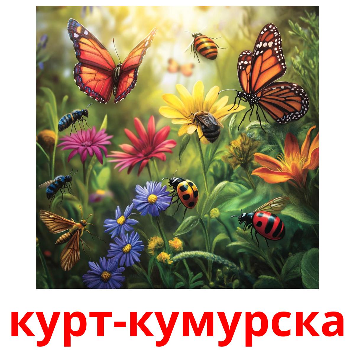 Printable picture cards set "Курт-кумурска" includes such kyrgyz words as: