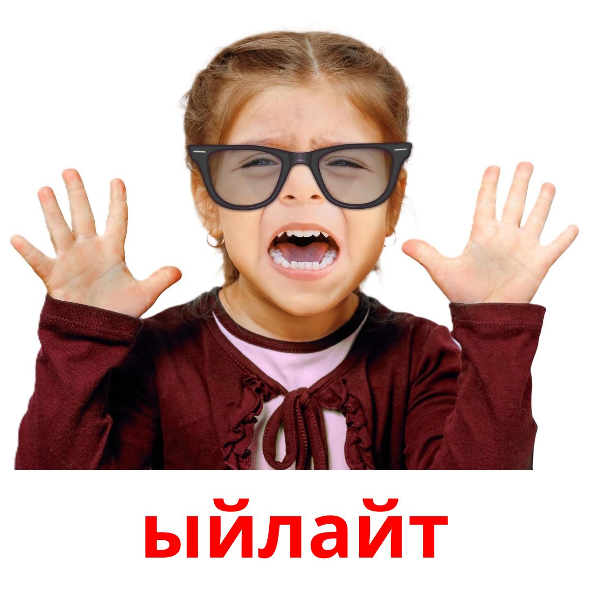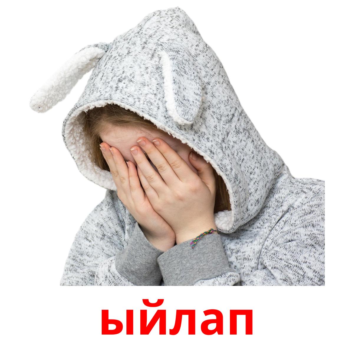 Printable picture cards set "Абал этиштери" includes such kyrgyz words as: