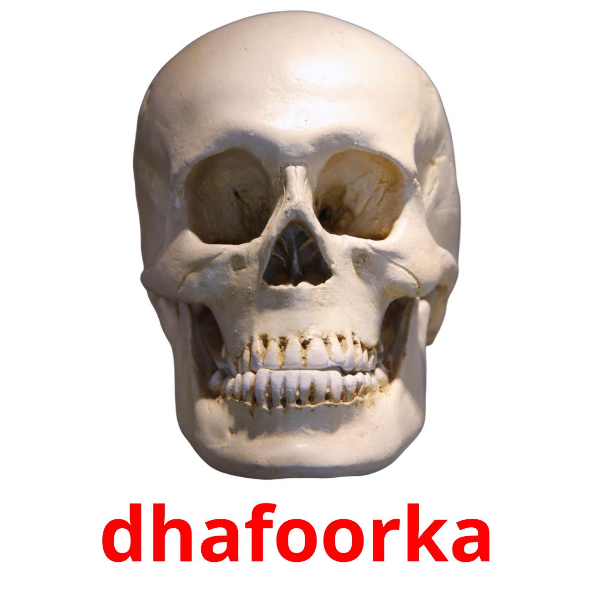 El juego de tarjetas imprimibles "Qaybaha Jidhka" incluye palabras en somalí como: