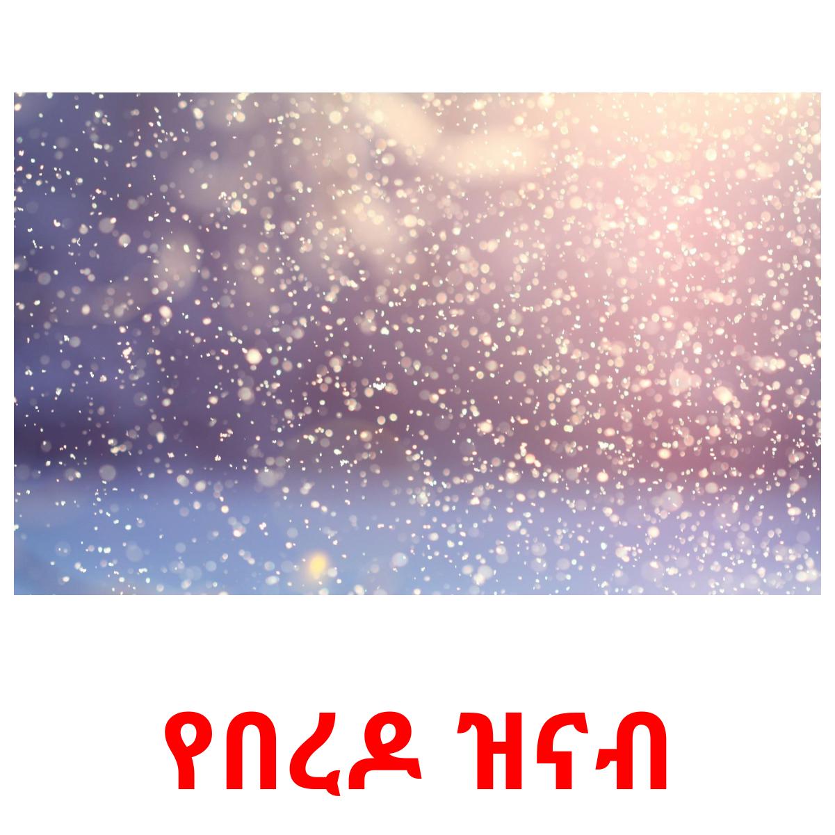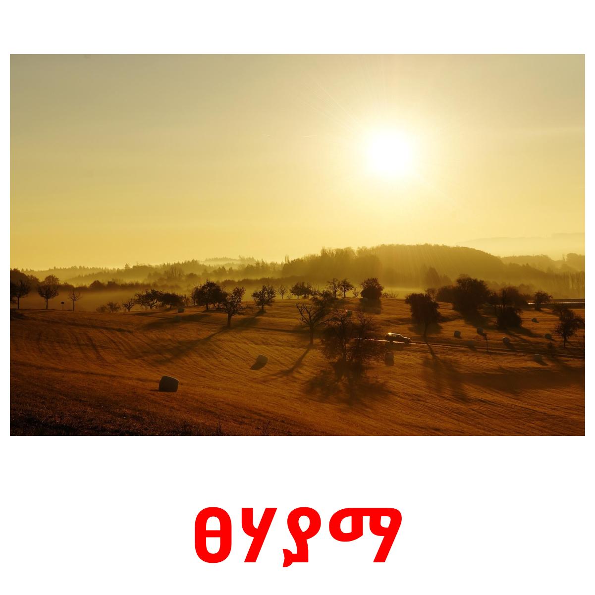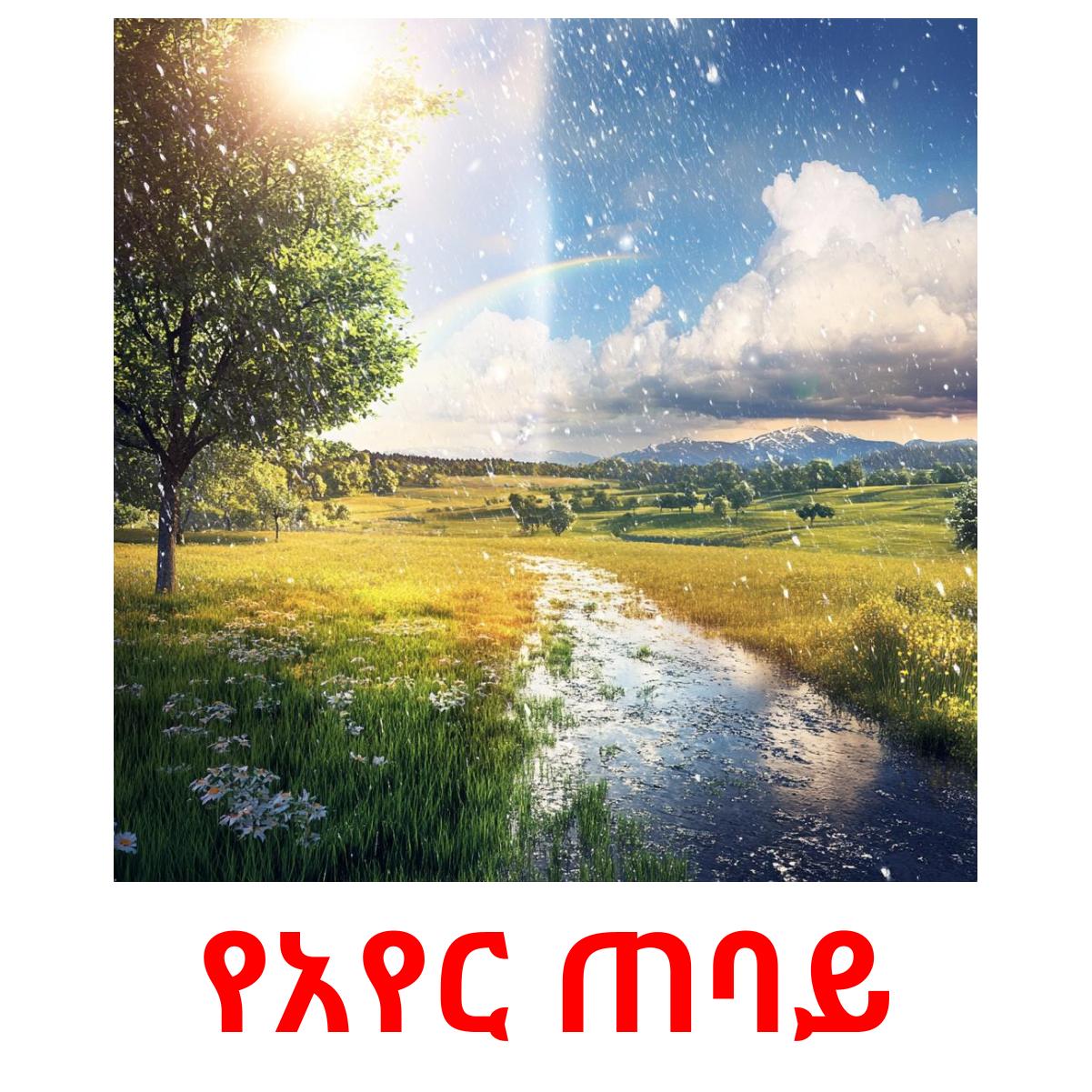 Tulostettava kuvakorttisarja "የአየር ሁኔታ", jossa on seuraavat sanat amharicksi: