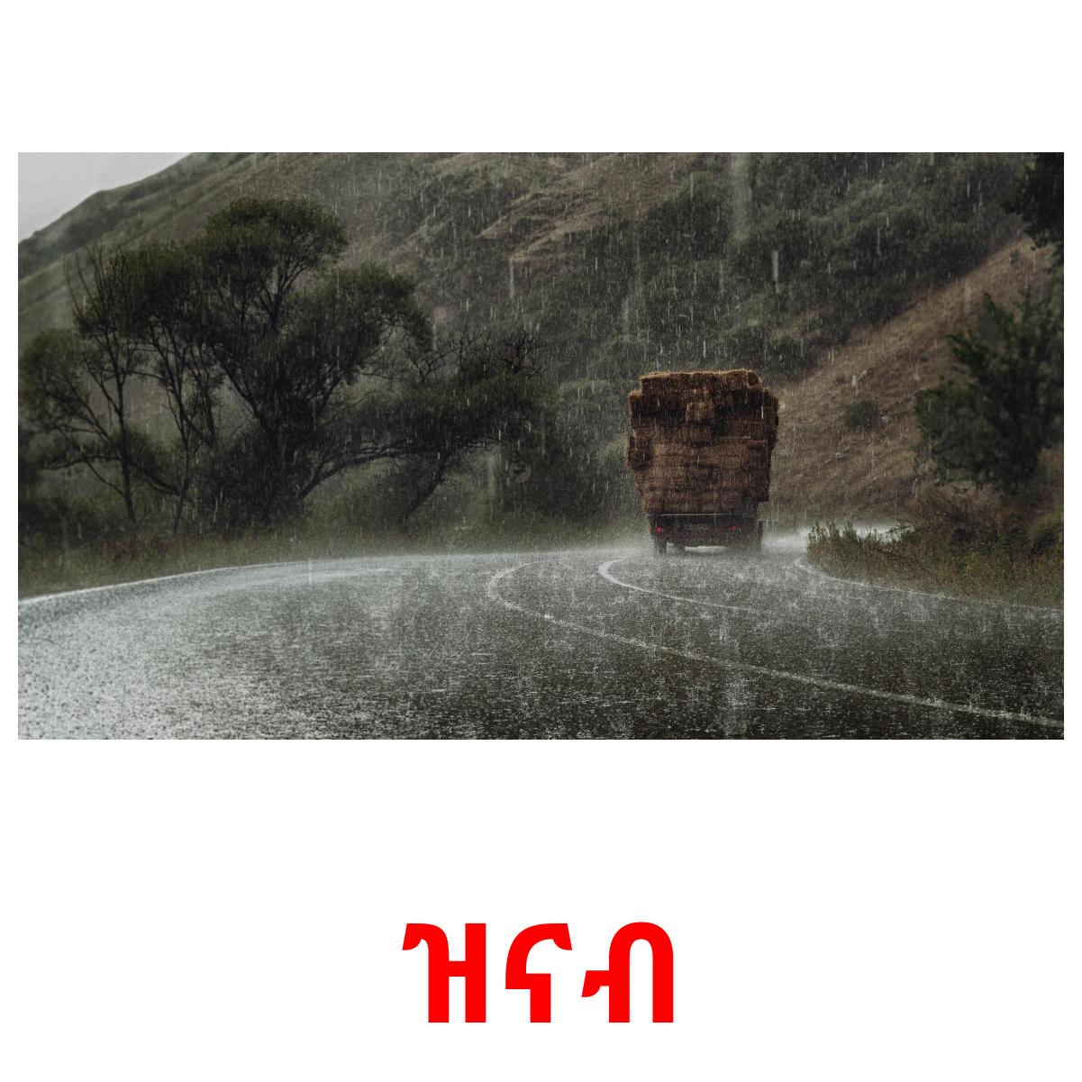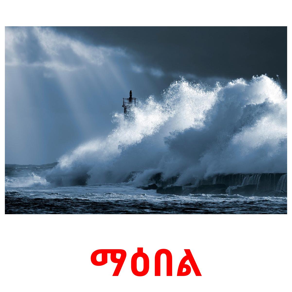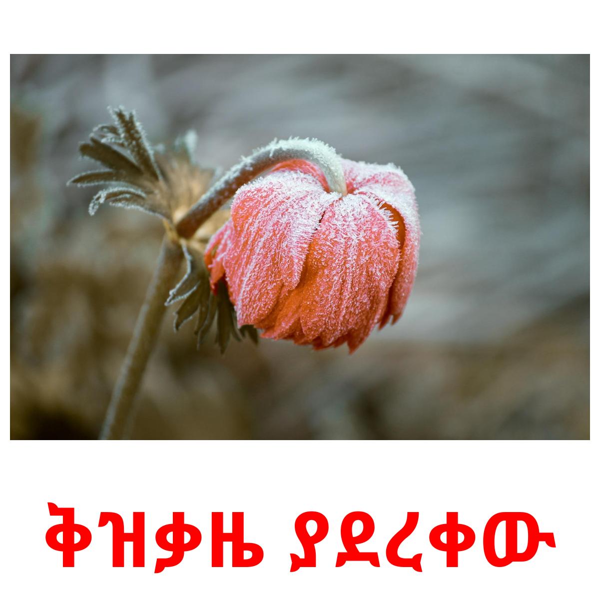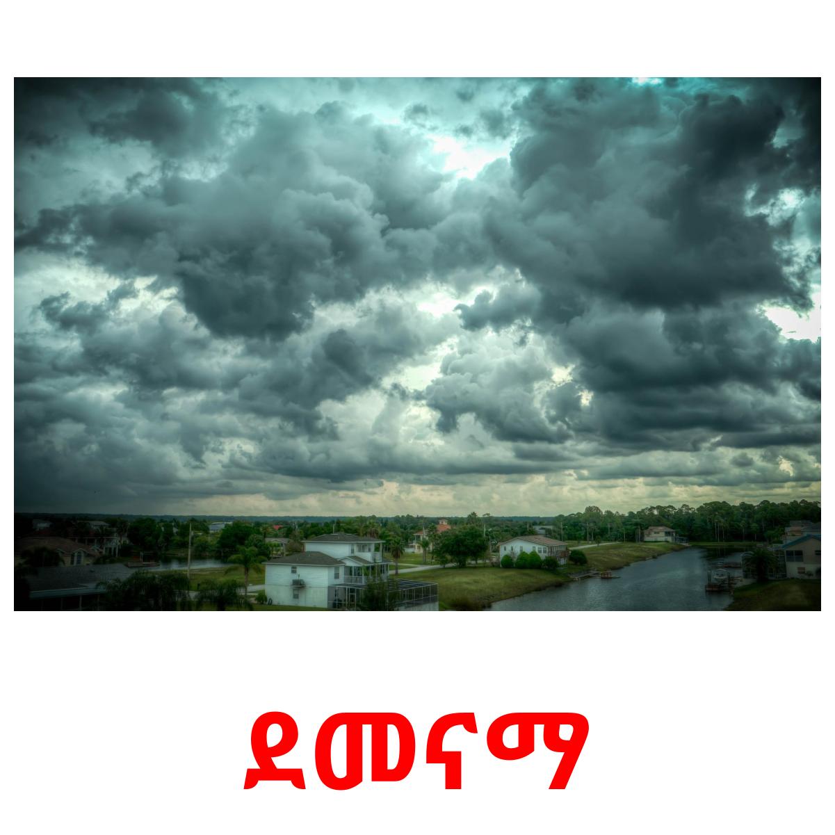 Tulostettava kuvakorttisarja "የአየር ሁኔታ", jossa on seuraavat sanat amharicksi: