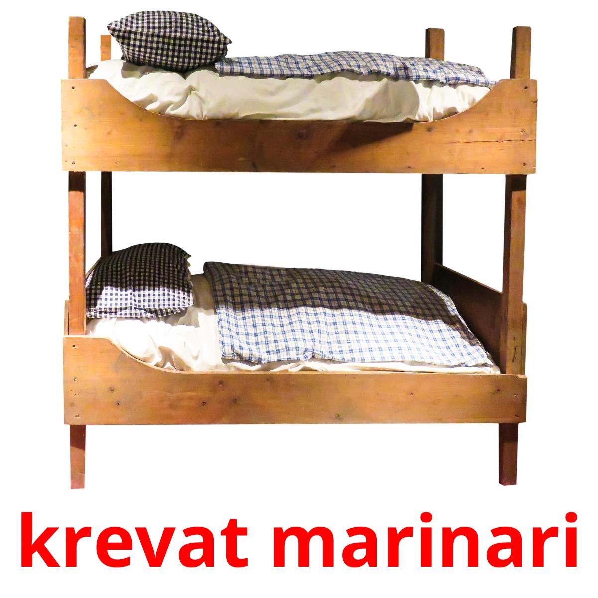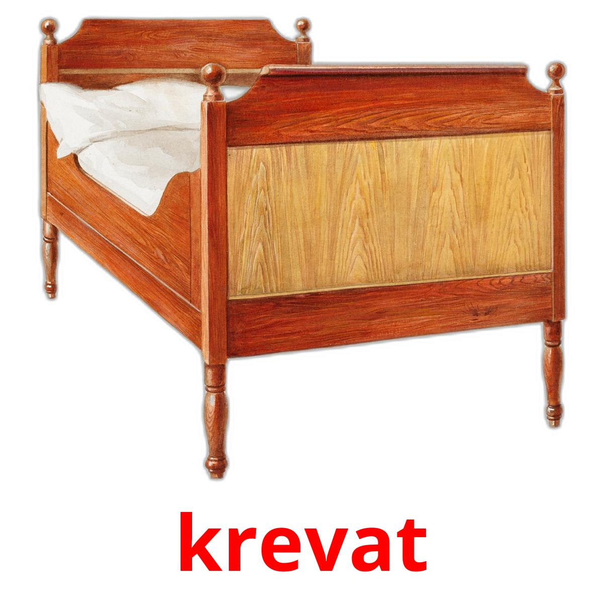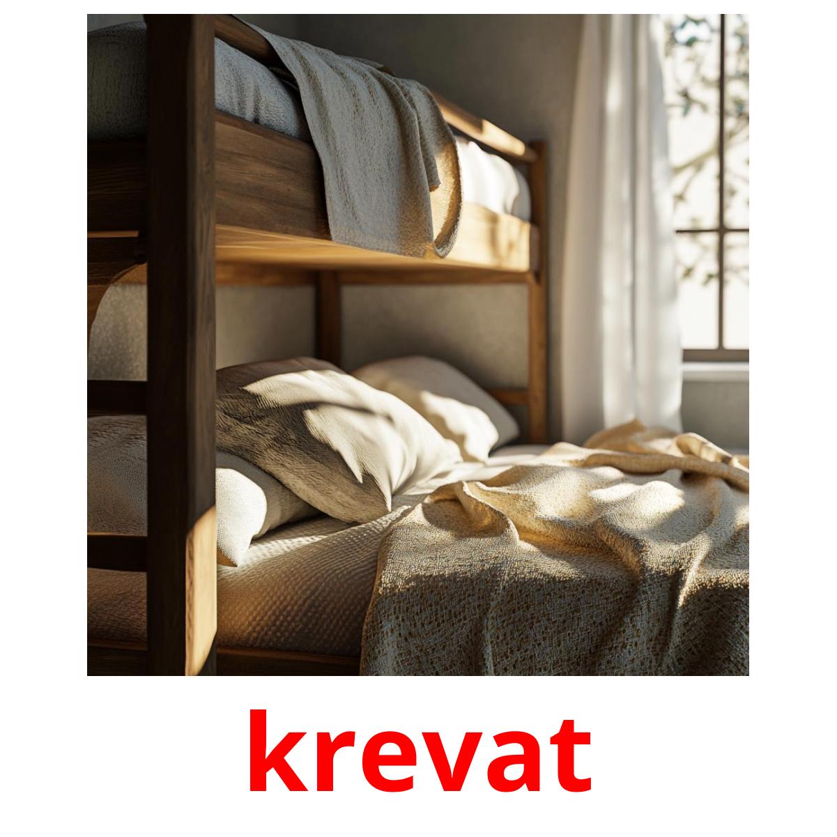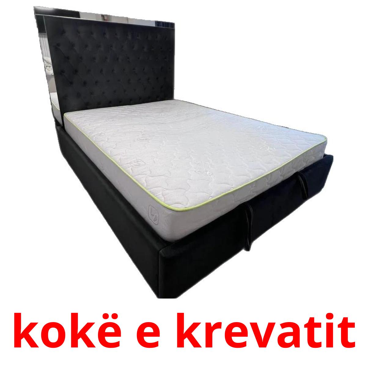 Le set de cartes d’images imprimables "Krevat" comprend des mots albanais tels que :