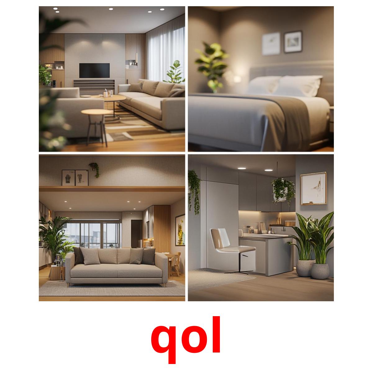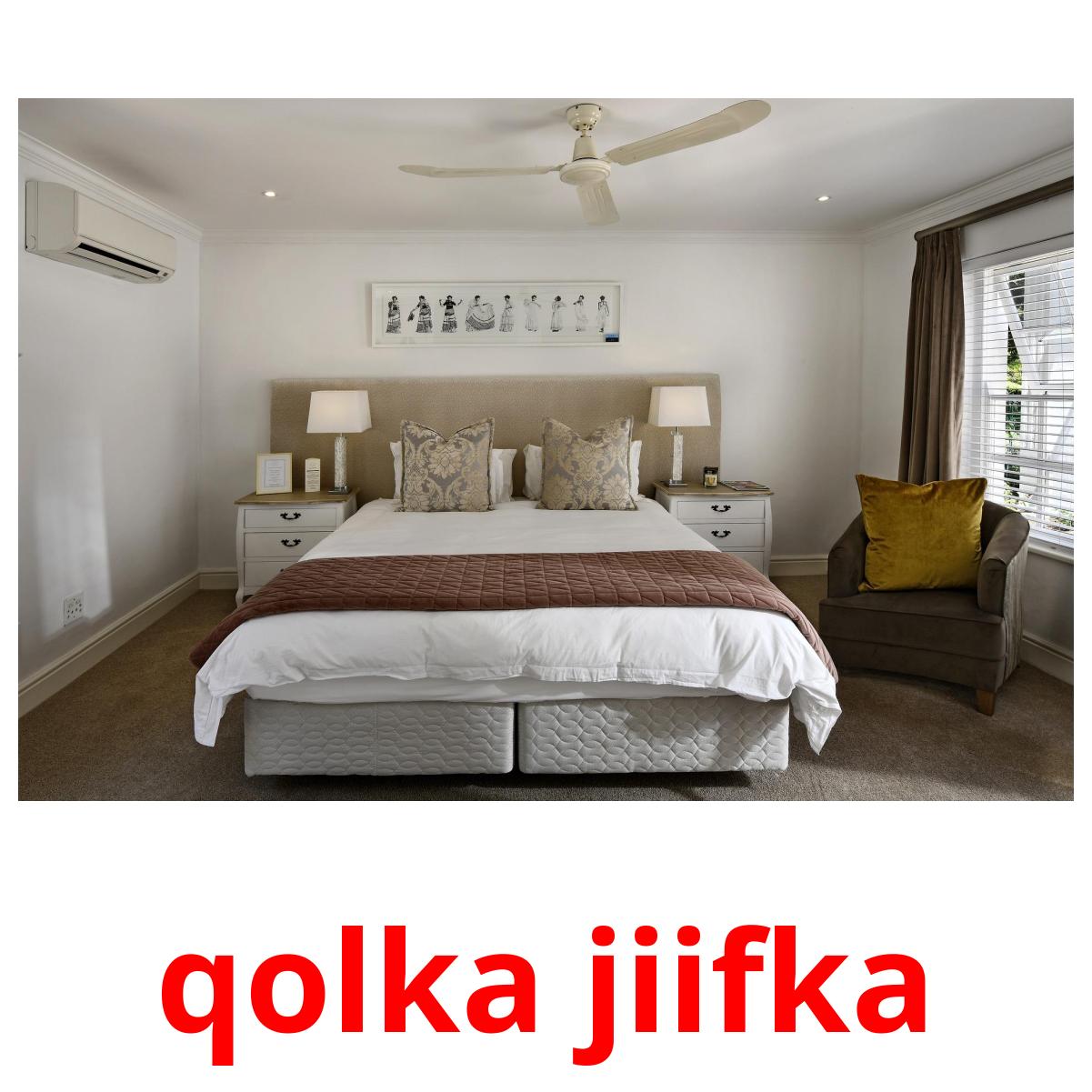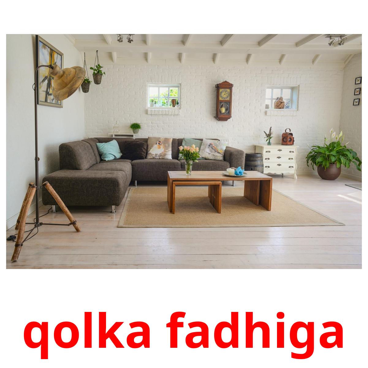 Le set de cartes d’images imprimables "Qol" comprend des mots somali tels que :