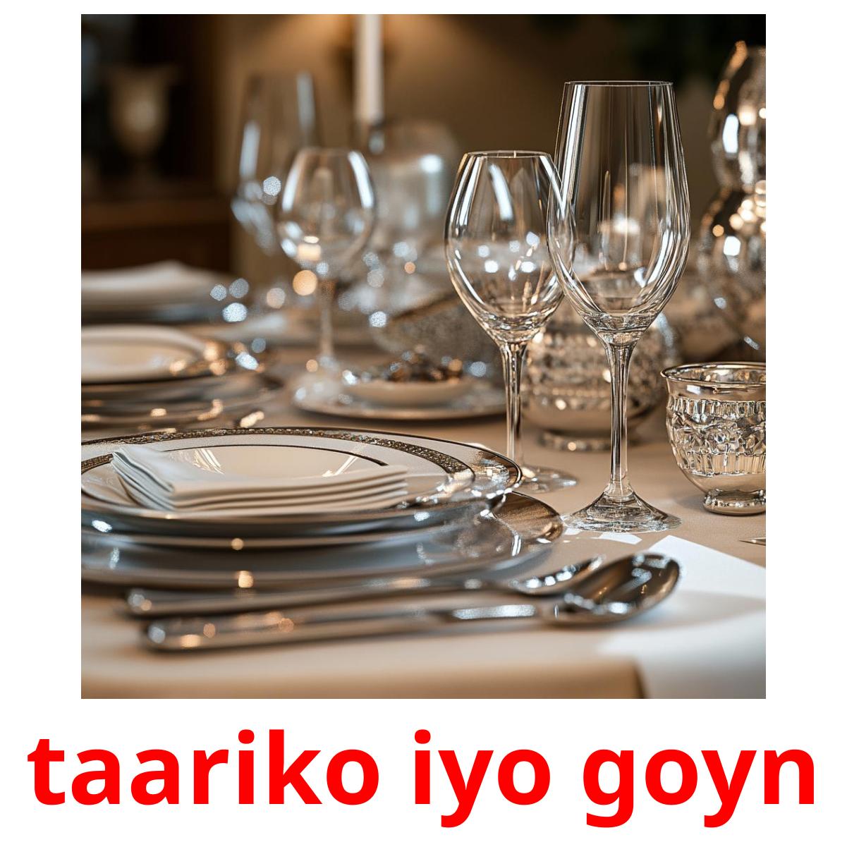 Printbare leerkaarten voor kinderen set "Taariko iyo goyn" bevat somalischee woorden zoals: