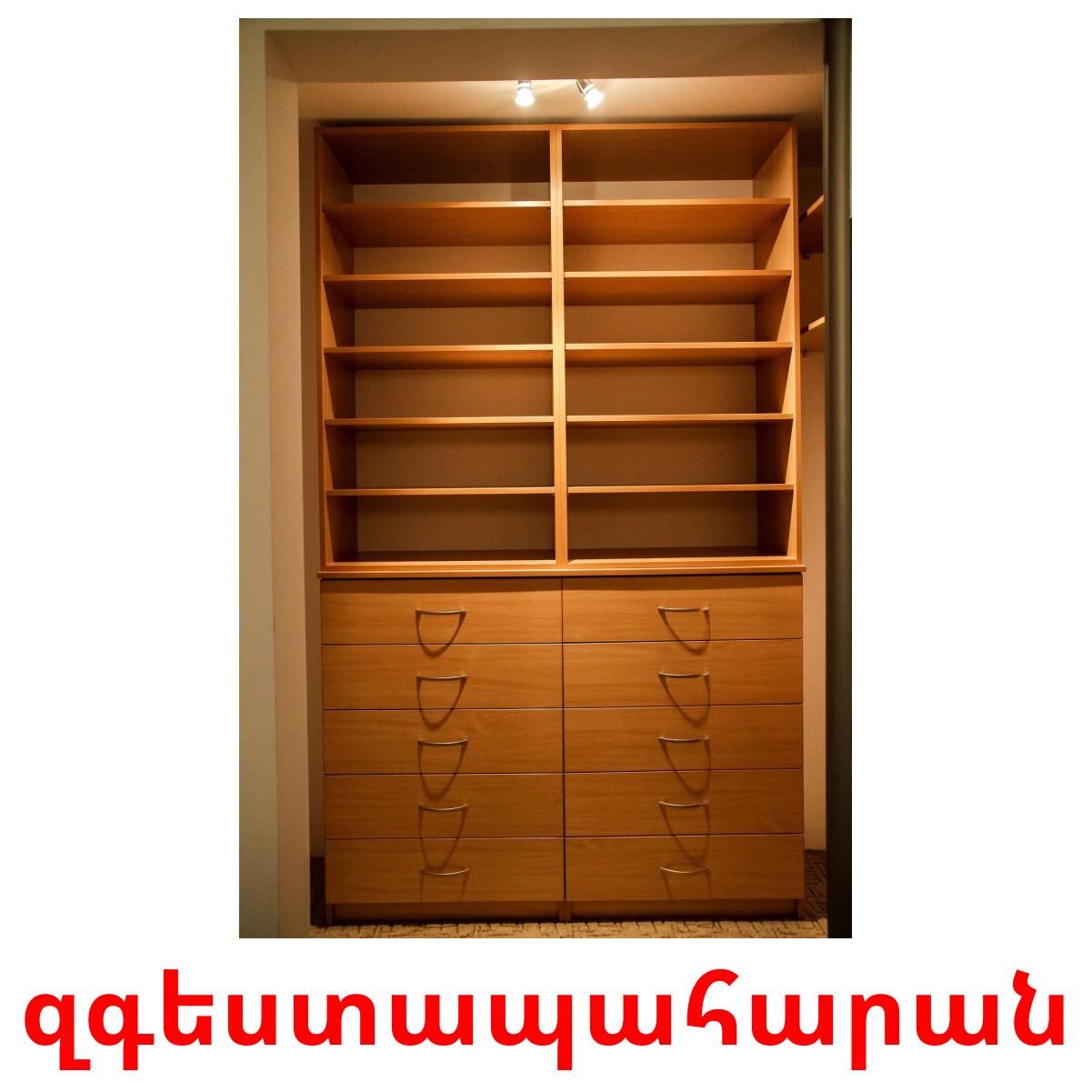Utskrivbare bildekort sett "Կահույք" inkluderer slike ord på armensk som: