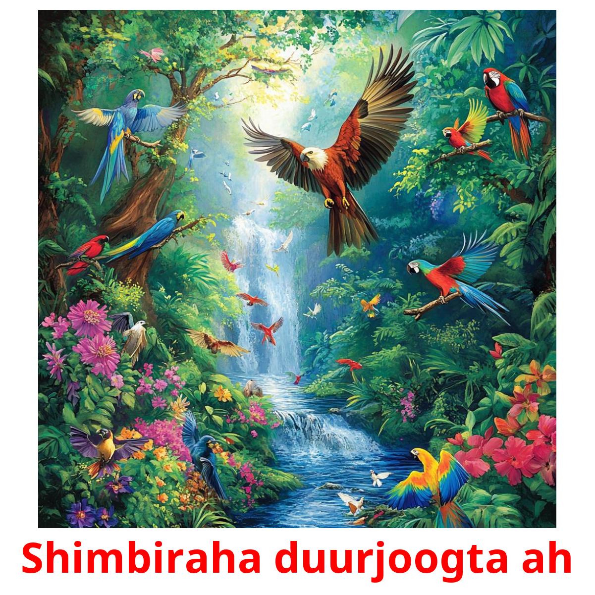 Utskrivbare bildekort sett "Shimbiraha duurjoogta ah" inkluderer slike ord på somali som: