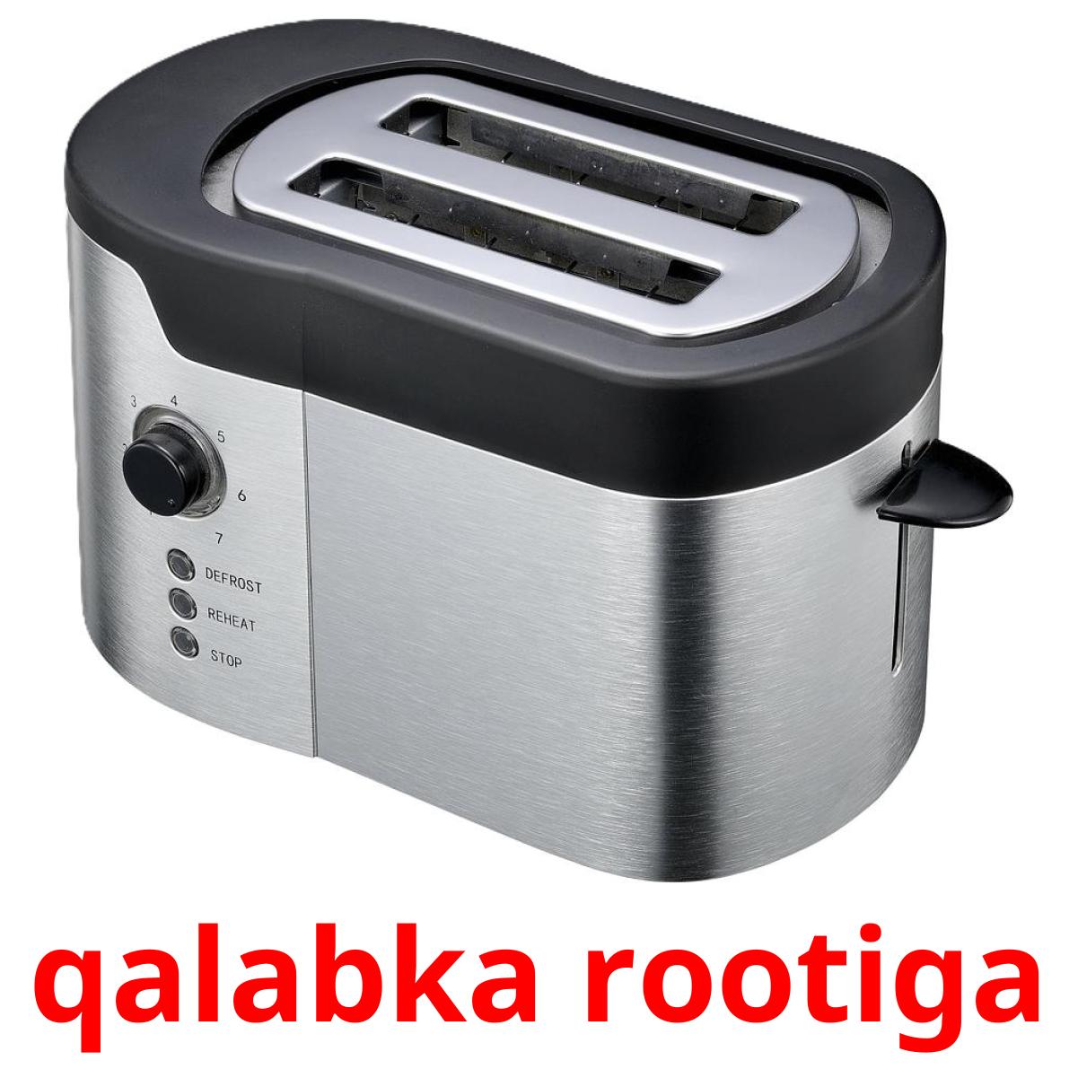 O conjunto de cartões com imagens para impressão "Elektarooniga" inclui palavras em somali como: