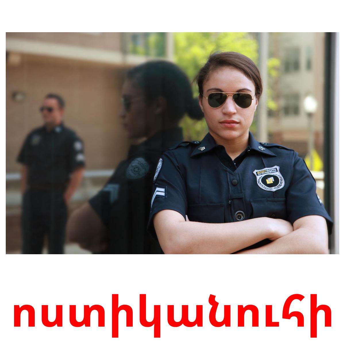 O conjunto de cartões com imagens para impressão "Մասնագիտություններ" inclui palavras em armênio como: