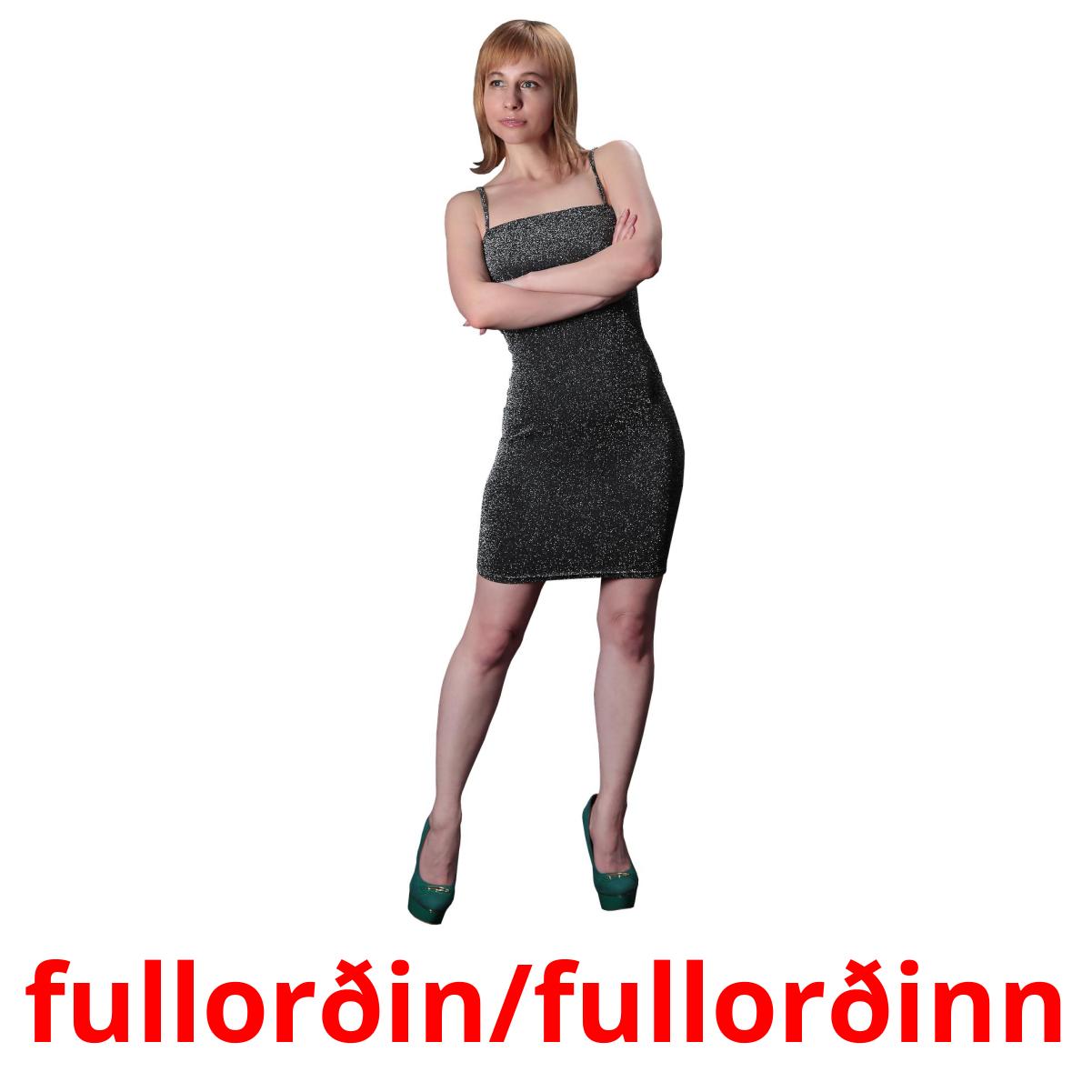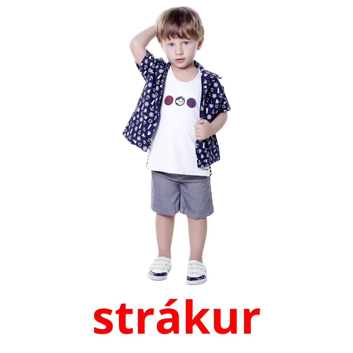 O conjunto de cartões com imagens para impressão "Stig" inclui palavras em icelandês como: