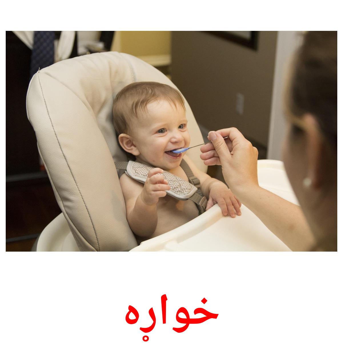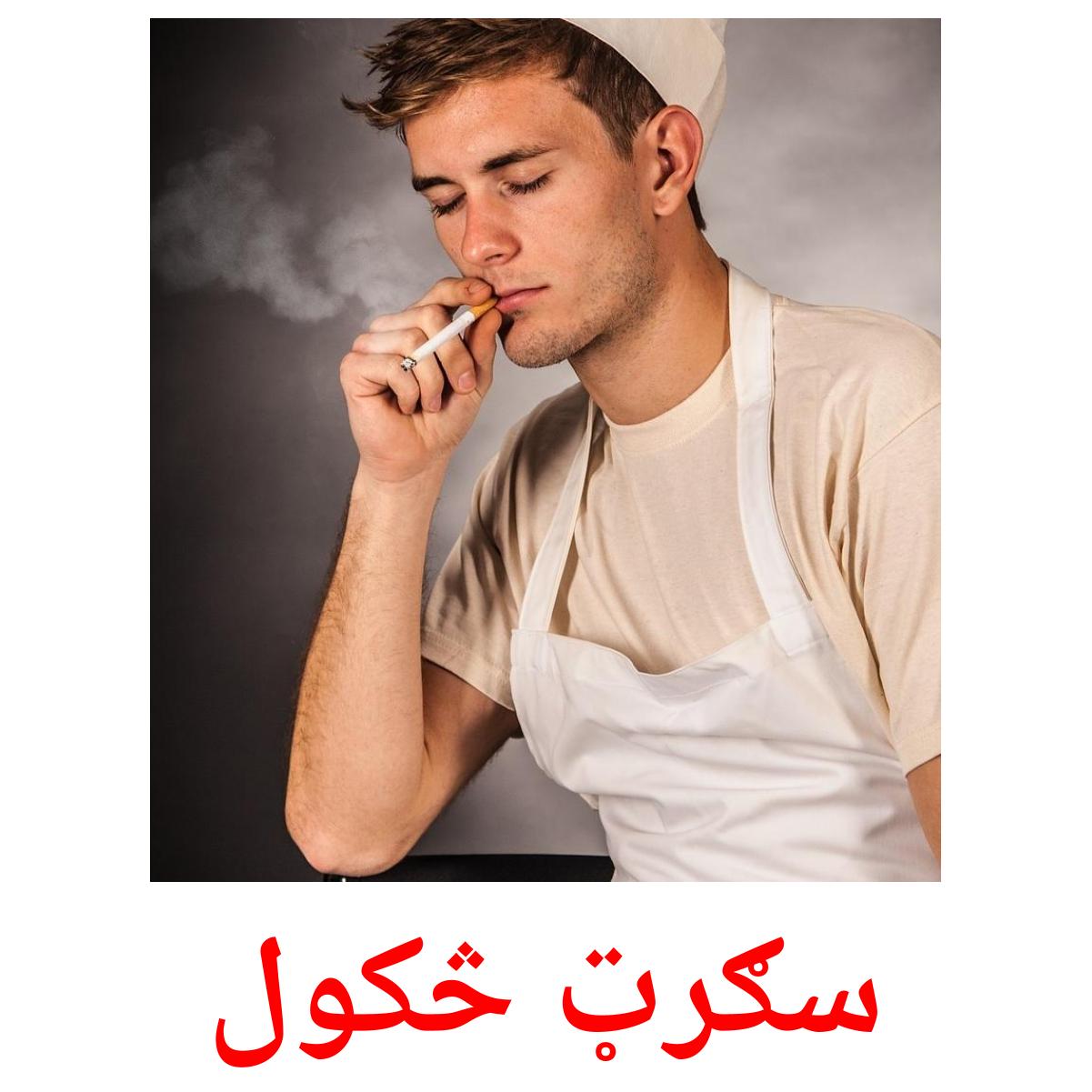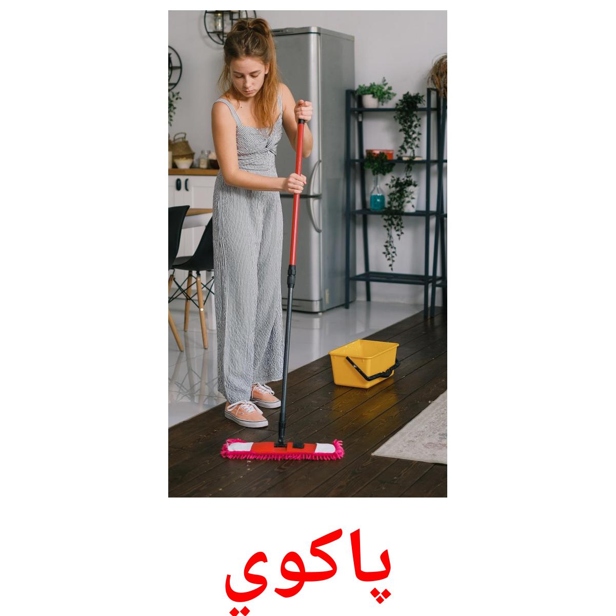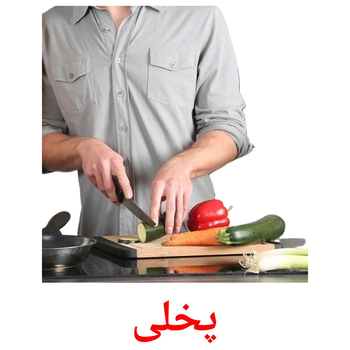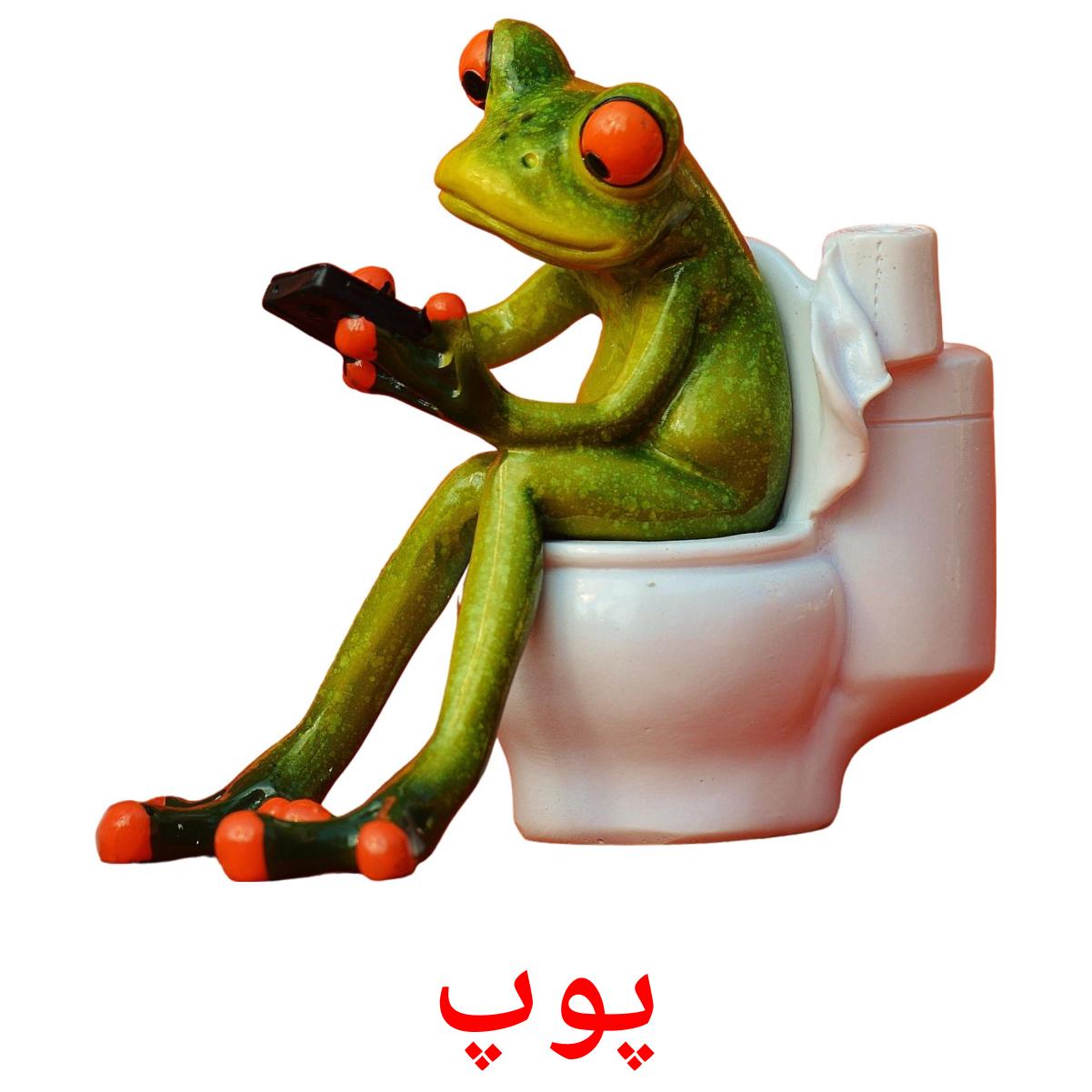 O conjunto de cartões com imagens para impressão "ورځنۍ چارې" inclui palavras em pashto como: