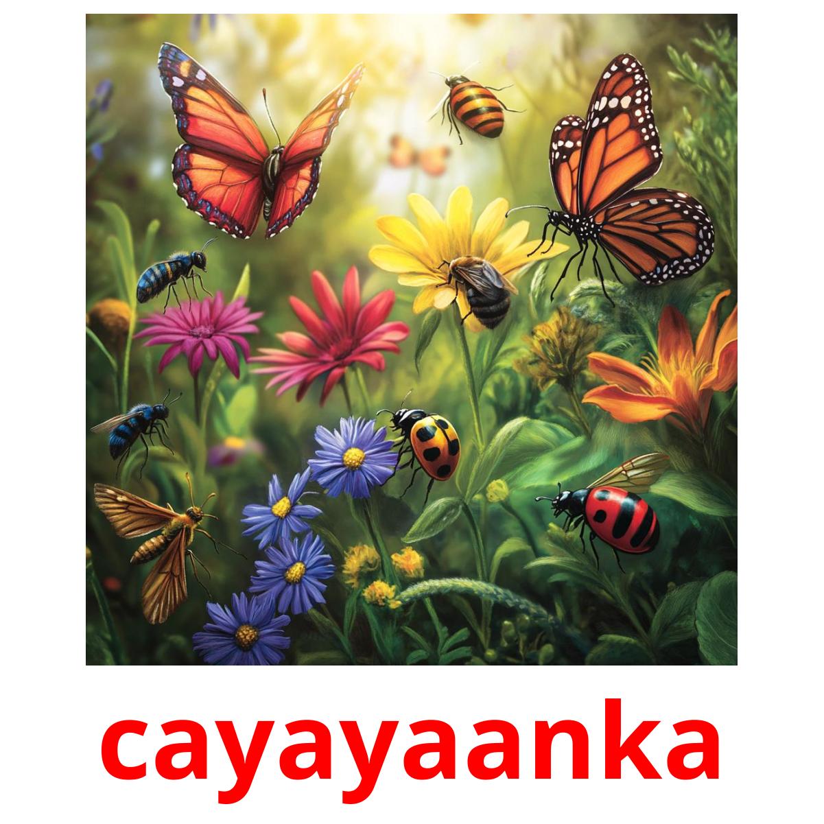 Setet med utskrivbara bildkort "Cayayaanka" innehåller somali ord som: