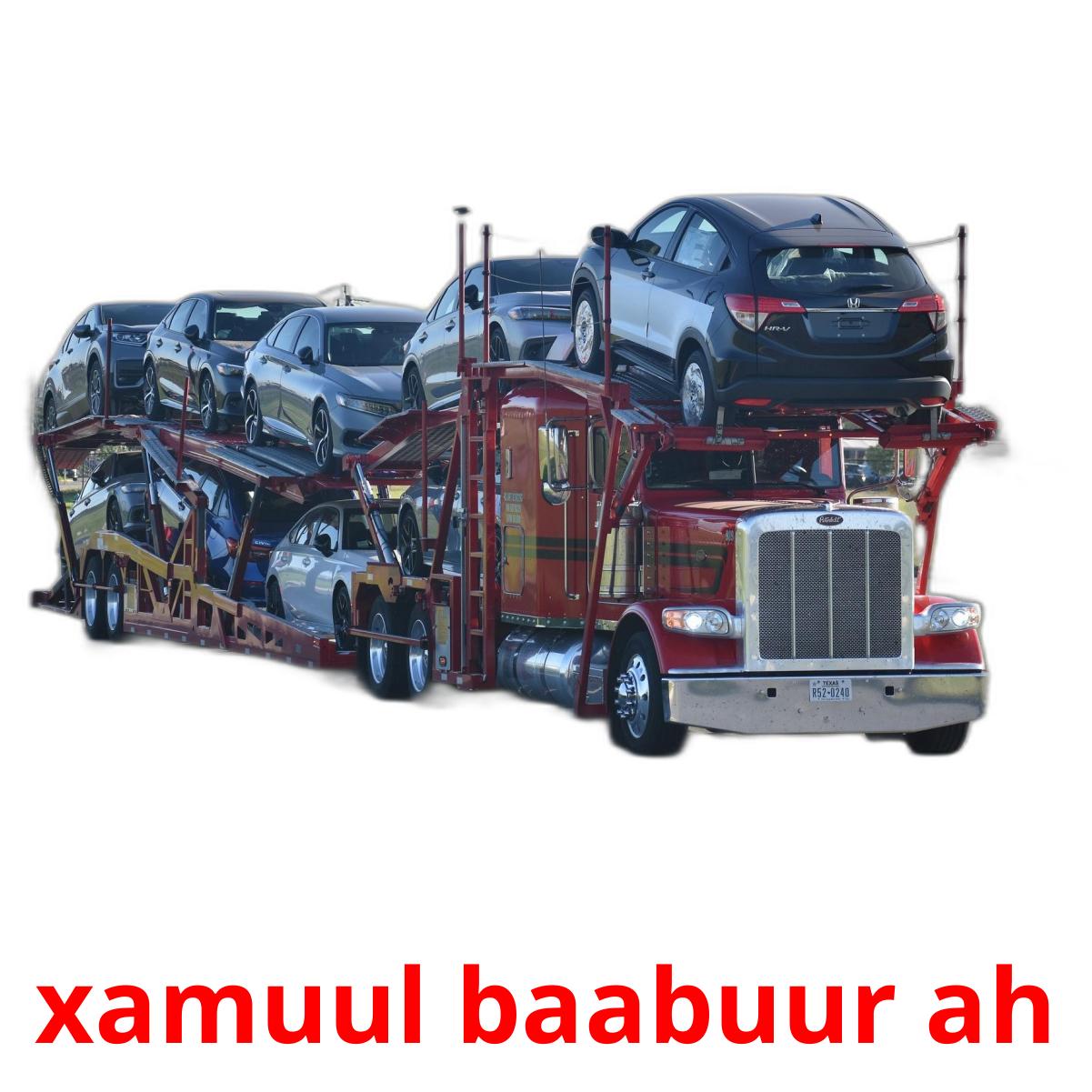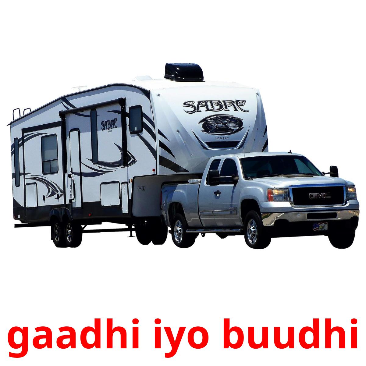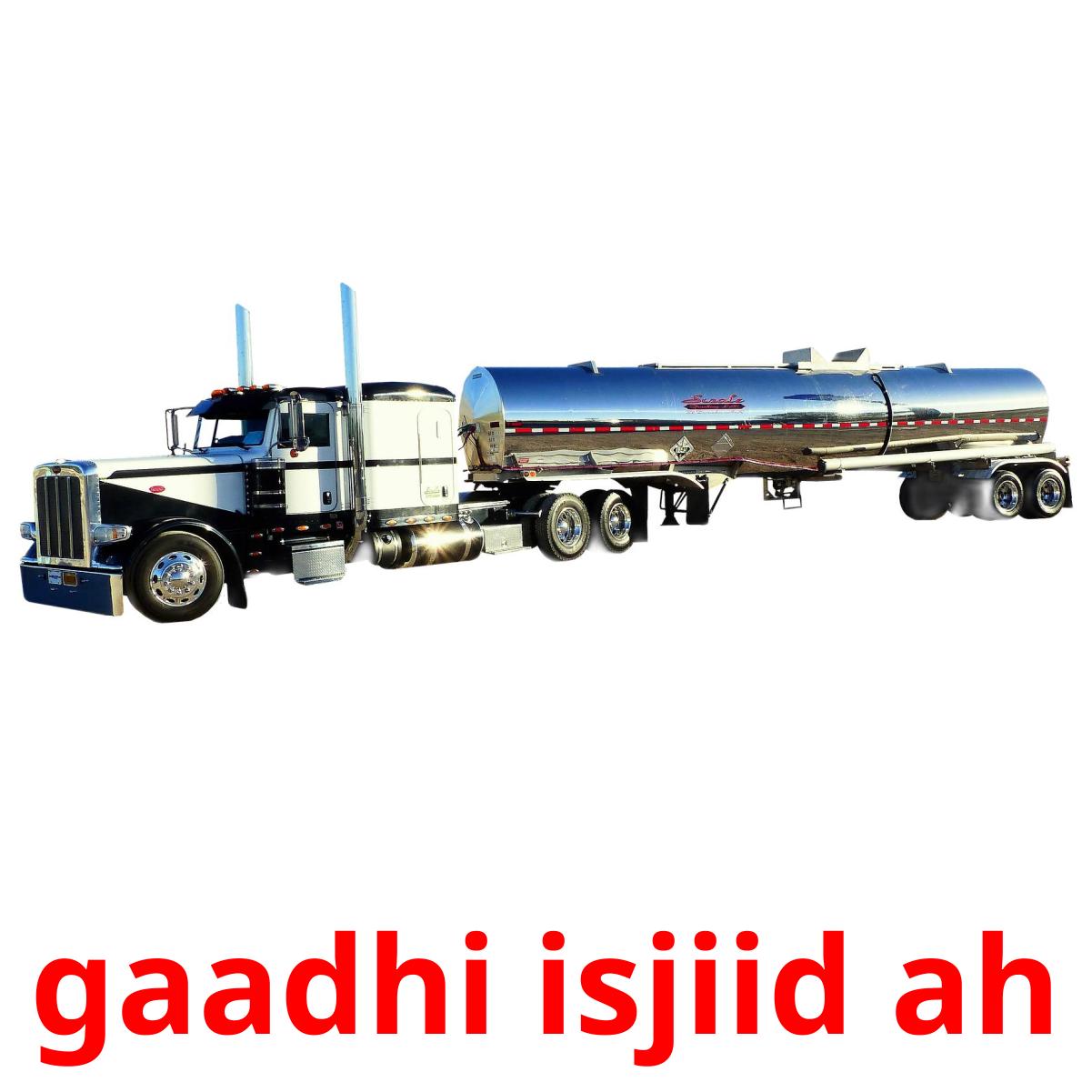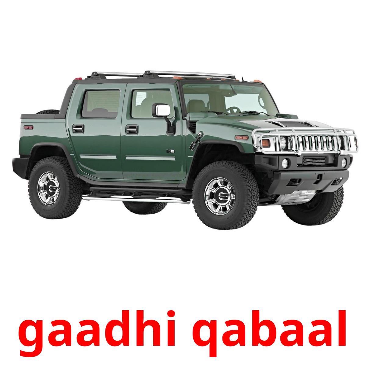 Setet med utskrivbara bildkort "Gaadiidka dhulka" innehåller somali ord som: