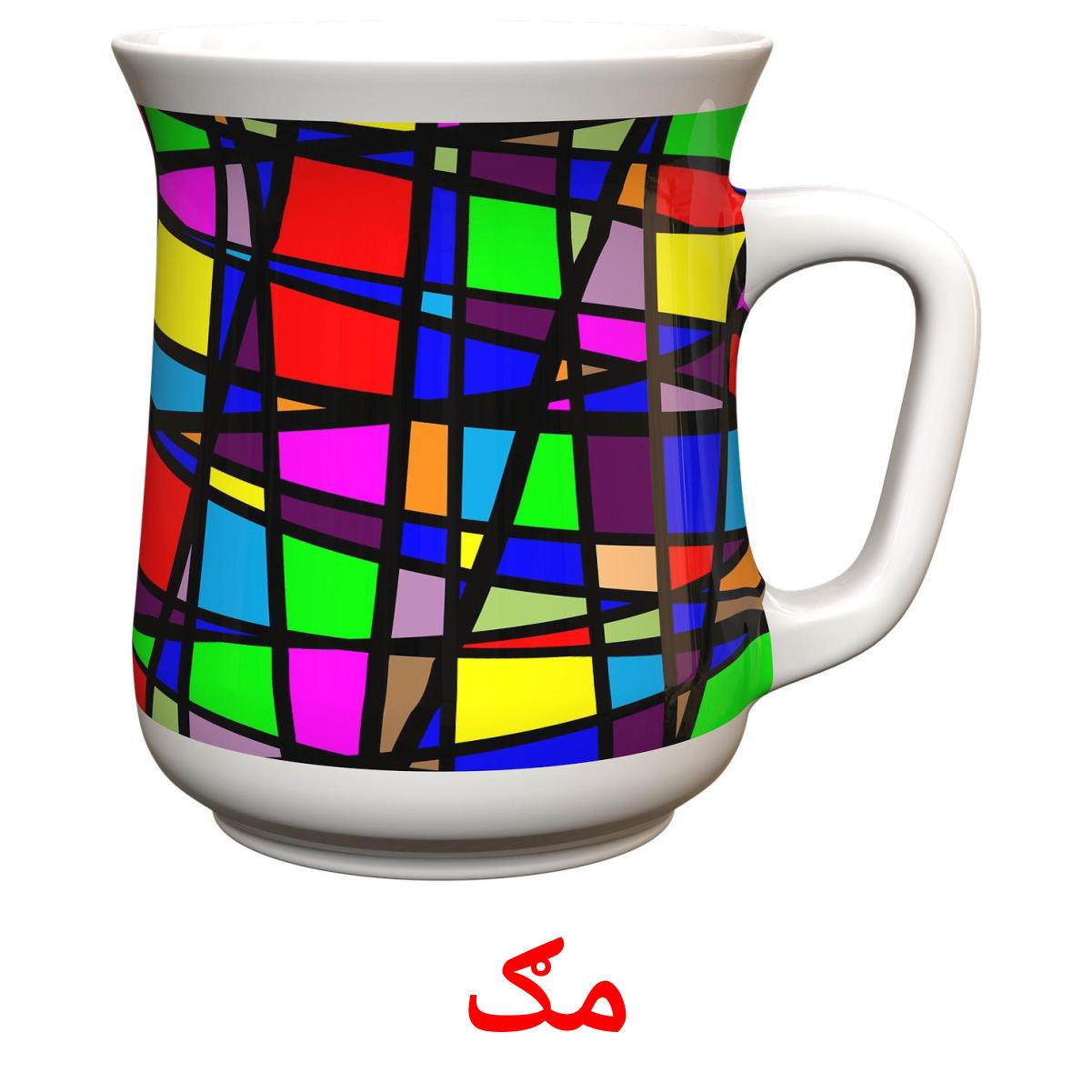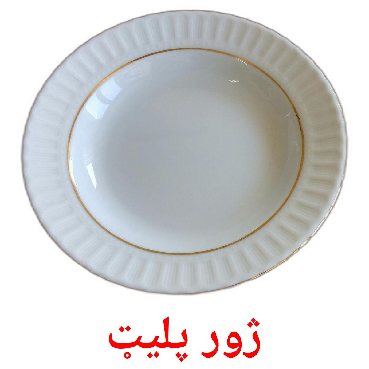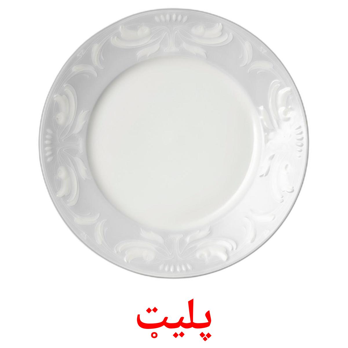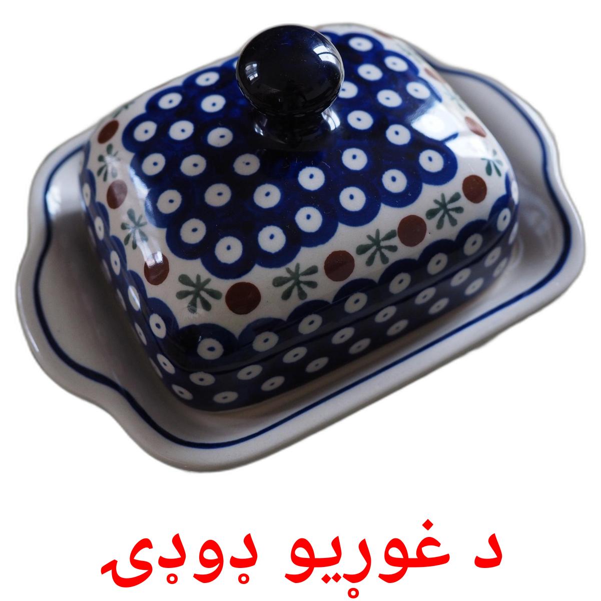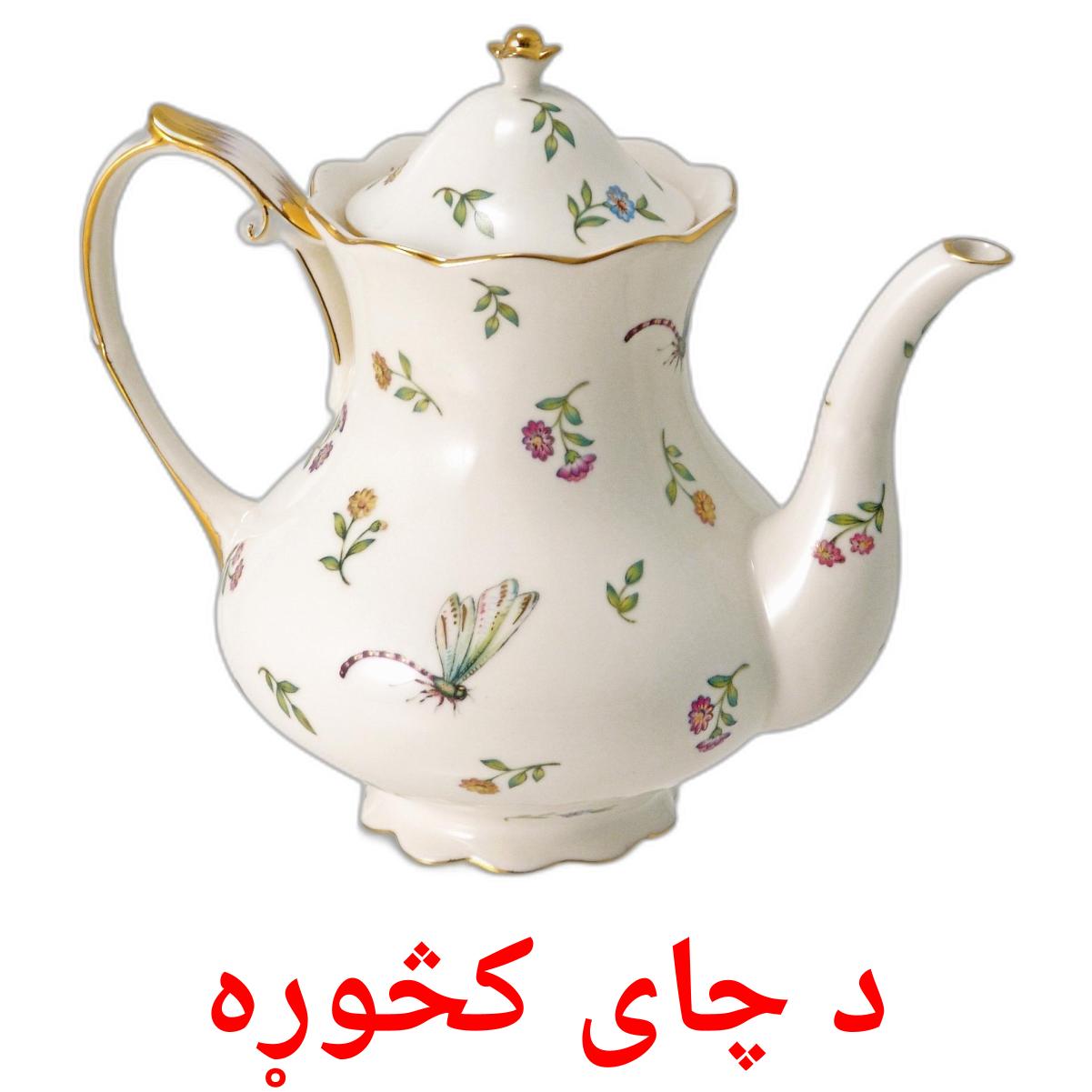 Setet med utskrivbara bildkort "کراکري او کاټلري" innehåller pashto ord som: