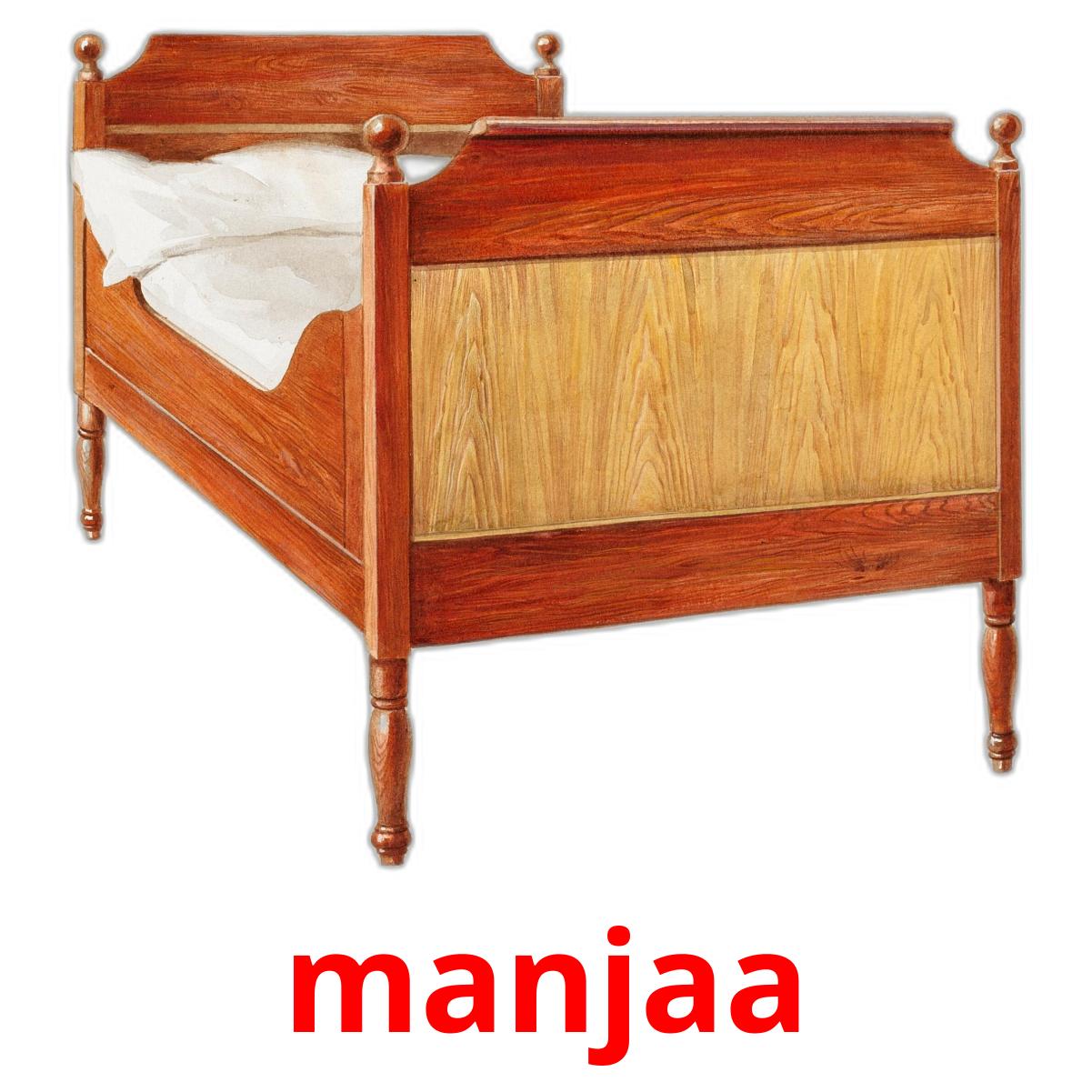 Setet med utskrivbara bildkort "ਮੰਜਾ" innehåller punjabi(gurmukhi) ord som: